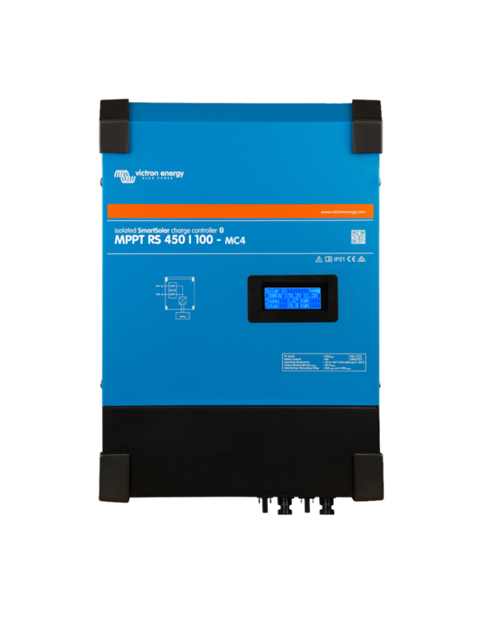Οι ελεγκτές ηλιακής φόρτισης SmartSolar MPPT RS είναι η λύση της Victron για συστήματα με συνδεδεμένες φωτοβολταϊκές συστοιχίες μεγάλων σειρών που φορτίζουν συστοιχίες μπαταριών DC 48 V. Αυτό το προϊόν είναι ιδανικό για μεγάλα συστήματα μπαταριών εκτός δικτύου και συνδεδεμένα στο δίκτυο. Διαθέσιμο σε μοντέλο 5,76kW και 11,52kW, τα χαρακτηριστικά περιλαμβάνουν ευρεία είσοδο ηλιακής τάσης 80-450 VDC, ανεξάρτητες εισόδους παρακολούθησης, πλήρη συνδεσιμότητα, απομονωμένες φωτοβολταϊκές συνδέσεις, οθόνη, πλήρως προγραμματιζόμενες παραμέτρους φόρτισης μπαταρίας και ενεργή ψύξη. Ο νέος σχεδιασμός μεταλλικής θήκης και οι πλήρως καλυμμένες ηλεκτρικές συνδέσεις βελτιώνουν την ασφάλεια και εκσυγχρονίζουν την παρουσίαση σύμφωνα με την τελευταία σουίτα προϊόντων Victron.